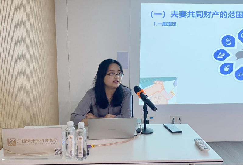 本次培訓(xùn)的主講人為璟開律所專職律師鐘玲妹律師,主講內(nèi)容為《夫妻共同財(cái)產(chǎn)和共同債務(wù)的法律問題》,具體包括:夫妻共同財(cái)產(chǎn)的范圍、夫妻個人財(cái)產(chǎn)的范圍、婚前財(cái)產(chǎn)能否轉(zhuǎn)化為夫妻共同財(cái)產(chǎn)、父母出資購房是否形成夫妻共同財(cái)產(chǎn)、夫妻出資購買但登記在未成年子女名下的財(cái)產(chǎn)的所有權(quán)歸屬、夫妻婚內(nèi)能否分割共同財(cái)產(chǎn)、夫妻一方處置財(cái)產(chǎn)是否需要雙方簽名、夫妻一方的債務(wù)能否直接執(zhí)行另一方的財(cái)產(chǎn)、婚前按揭購房婚后共同還貸的房屋的所有權(quán)歸屬、夫妻共同債務(wù)的認(rèn)定、不屬于夫妻共同債務(wù)的具體情形、婚內(nèi)是否可以約定債務(wù)由一方承擔(dān)、婚內(nèi)虛構(gòu)債務(wù)如何認(rèn)定和處理等常見的熱點(diǎn)、難點(diǎn)問題。