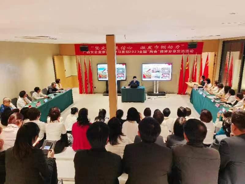 活動伊始由自治區(qū)工商聯(lián)副主席、秘書長、辦公室主任賓建光在交流會上傳達了習近平總書記在全國政協(xié)十四屆一次會議民建工商聯(lián)界聯(lián)組會上發(fā)表的重要講話的精神。廣西女企業(yè)家商會會長楊英會長在交流會上作出了《牢記領(lǐng)袖囑托,擔當時代使命—傳達學習貫徹全國兩會精神》精彩分享。