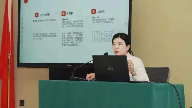 其后,由我所執(zhí)行主任、黨員律師殷迪佳圍繞消費者維權(quán)為核心,結(jié)合生動的案例和法律規(guī)定,從3·15消費者權(quán)益日由來、消費者的主要權(quán)利、維權(quán)案例解析、消費者維權(quán)方式及途徑四個方面,用通俗易懂的語言讓現(xiàn)場人員對消費者權(quán)益保護法等法規(guī)有了更全面的了解,對如何維護自身合法權(quán)益有了更清晰的認識,對加強法治學習起到了積極的推動作用。