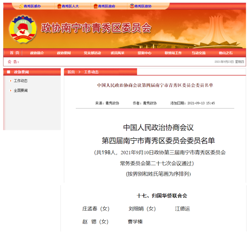 2021年9月10日,政協(xié)第三屆南寧市青秀區(qū)委員會常務(wù)委員會第二十七次會議在南寧召開,會議審議通過了中國人民政治協(xié)商會議第四屆南寧市青秀區(qū)委員會委員名單。廣西觀復(fù)律師事務(wù)所創(chuàng)始合伙人、副主任江德運律師擔(dān)任政協(xié)第四屆南寧市青秀區(qū)委員會委員。