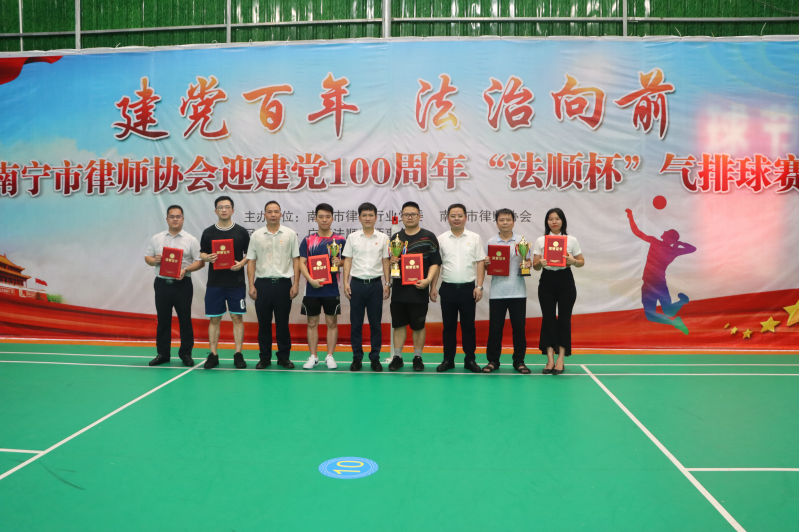 2021年,中國共產(chǎn)黨走過了百年崢嶸歲月。百年的卓絕奮斗成就輝煌,百年的初心使命歷久彌堅!為慶祝建黨100周年,南寧市律師協(xié)會舉辦南寧市律師“排球賽、羽毛球賽、籃球賽、知識競賽、書畫作品大賽”等系列活動。廣西謙行律師事務(wù)所積極響應(yīng),冠名“南寧市律師協(xié)會迎建黨100周年籃球賽”、“南寧市律師協(xié)會迎建黨100周年羽毛球賽”,并組織本所律師報名參加,認(rèn)真?zhèn)鋺?zhàn),最終謙行所榮獲“謙行杯”籃球賽亞軍、“法順杯”氣排球賽優(yōu)勝獎、知識競賽優(yōu)勝獎。