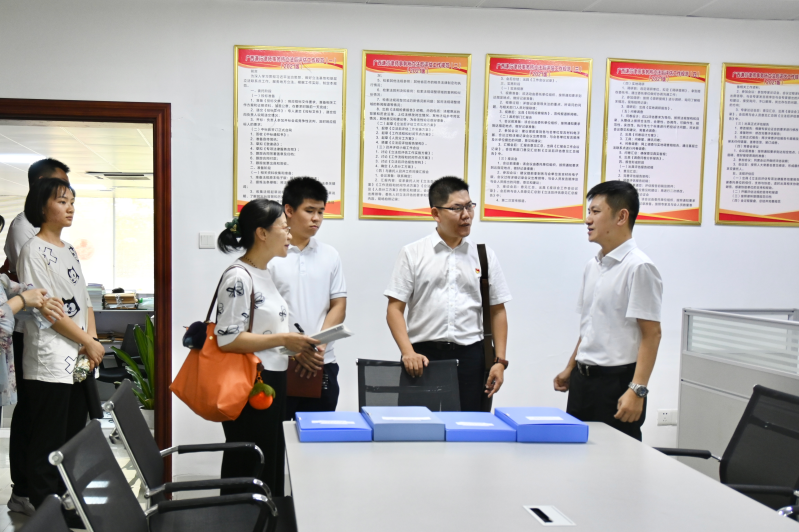 廖原院長(zhǎng)一行在羅旭主任帶領(lǐng)下,觀看謙行所宣傳片,參觀謙行“立法工作室”及黨建文化墻等,并在謙行模擬法庭召開(kāi)座談交流會(huì)。