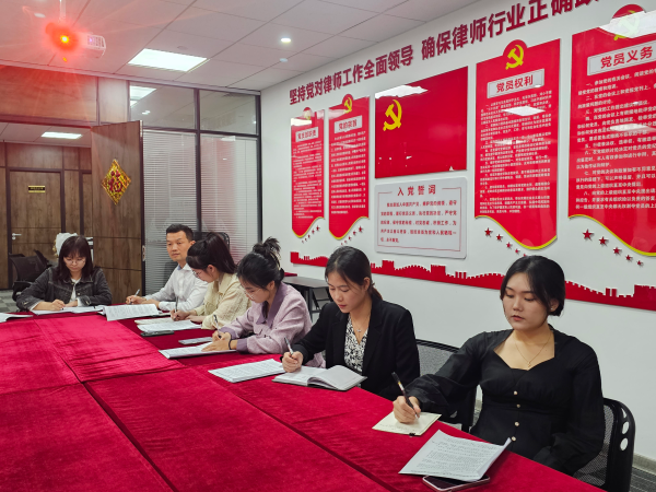2023年10月27日下午,廣西佳賓律師事務(wù)所在本所會議室召開工作學習交流會。本次會議是先由佳賓所主任王小兵律師帶領(lǐng)全所成員一起學習關(guān)于《中華全國律師協(xié)會關(guān)于禁止違規(guī)炒作案件的規(guī)則(試行)》的文件和該規(guī)則的相關(guān)解讀。王小兵主任表示,該規(guī)則的出臺是推進全面依法治國、促進司法公正的內(nèi)在要求,是深化律師行業(yè)突出問題專項治理成果、推進行業(yè)規(guī)范健康發(fā)展的重要舉措,也是維護誠信公平的良好執(zhí)業(yè)環(huán)境、提升律師行業(yè)良好社會形象的客觀需要。我們要充分認識這份規(guī)則出臺的重要意義,準確理解并嚴格執(zhí)行該規(guī)則,依法依規(guī)誠信執(zhí)業(yè),堅持為當事人服務(wù)、人民服務(wù),做受人尊敬的法律之師、誠信之師。各與會人員也表示,在今后的執(zhí)業(yè)過程中一定會更加謹言慎行,嚴守法紀底線,堅決不做違反該規(guī)則的行為,做好為人民服務(wù)的專業(yè)律師。