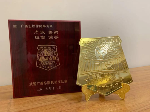 張宏新律師秉承律師崇高的職業(yè)道德,經(jīng)常為社會(huì)提供免費(fèi)服務(wù),為構(gòu)建和諧社會(huì)、為維護(hù)政府形象作出了應(yīng)有貢獻(xiàn)。他積極參加捐資助學(xué)、扶貧幫困活動(dòng),經(jīng)常為社區(qū)居民提供免費(fèi)的咨詢(xún)服務(wù)。在抗擊新冠肺炎疫情活動(dòng)中,他帶領(lǐng)本所律師捐款、捐物,為新冠疫情的涉法問(wèn)題建言獻(xiàn)策,發(fā)揮了律師應(yīng)有的作用。2018年6月,張宏新律師所在的廣西宏松律師事務(wù)所開(kāi)始與武警廣西總隊(duì)機(jī)動(dòng)支隊(duì)開(kāi)展警民共建活動(dòng),此后,張宏新律師作為本所主任一直帶領(lǐng)本所律師為該部隊(duì)官兵免費(fèi)提供法律咨詢(xún)服務(wù),不厭其煩地為部隊(duì)官兵解答法律問(wèn)題,并協(xié)助該部隊(duì)處理重大疑難法律問(wèn)題,曾于2019年5月獲得該部隊(duì)贈(zèng)送的一面寫(xiě)著“警民共建漁水情,攜手奮進(jìn)新時(shí)代”的紅色錦旗,2019年12月又得到該部隊(duì)贈(zèng)送的極具象征意義的“榮譽(yù)隊(duì)標(biāo)”,得到了該部隊(duì)的充分信任和高度好評(píng)。