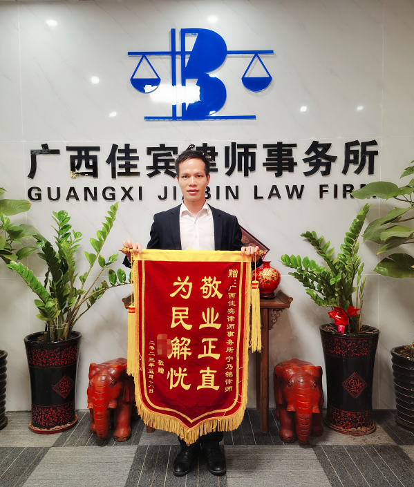 鮮紅的錦旗,感謝的話語,代表著當事人對寧乃銘律師維護人民群眾合法權益的認可,也是對廣西佳賓律師事務所的認可。
