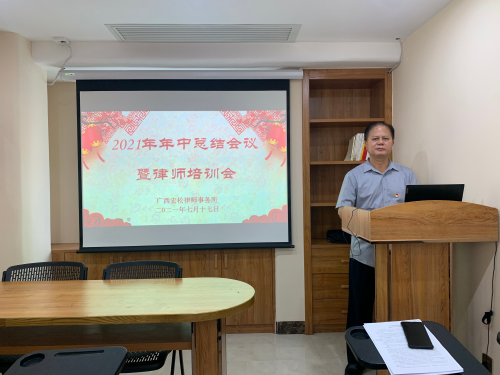 2021年7月17日上午,廣西宏松律師事務(wù)所召開2021年年中總結(jié)會(huì)暨律師業(yè)務(wù)培訓(xùn)會(huì)。會(huì)上對(duì)本所今年上半年各項(xiàng)工作進(jìn)行了總結(jié),明確了下半年工作重心,并進(jìn)行了律師業(yè)務(wù)培訓(xùn)。本所全體律師、行政人員參加了本次會(huì)議。會(huì)議由張宏新主任主持。