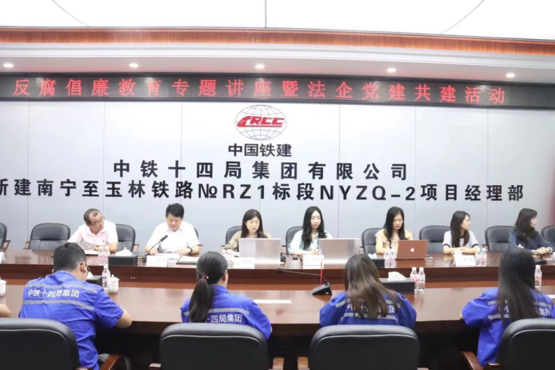 為進(jìn)一步學(xué)習(xí)貫徹黨的十九屆六中全會(huì)精神和習(xí)近平新時(shí)代中國(guó)特色社會(huì)主義思想,增強(qiáng)黨建聯(lián)建活動(dòng)的開(kāi)展,2022年5月21日下午,上海市匯業(yè)(南寧)律師事務(wù)所黨支部與中鐵十四局集團(tuán)有限公司新建南玉鐵路站前工程N(yùn)O2項(xiàng)目經(jīng)理部黨支部開(kāi)展“法企同筑廉潔 共建品質(zhì)南玉”主題黨建聯(lián)建活動(dòng)。