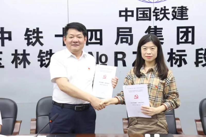 隨后,中鐵十四局集團(tuán)有限公司新建南玉鐵路站前工程NO2項(xiàng)目經(jīng)理部黨支部書記郭合理同志發(fā)表講話,本次共建聯(lián)建活動(dòng)是雙方面向未來(lái)、攜手共進(jìn)、協(xié)力共贏的有力舉措,有利于雙方互學(xué)互促、優(yōu)勢(shì)互補(bǔ)、共同提高。希望通過(guò)黨建聯(lián)建的形式,能夠相互學(xué)習(xí)和交流,促進(jìn)雙方黨建工作的提升;雙方充分利用各自優(yōu)勢(shì),互幫互助,做牢做實(shí)黨建聯(lián)建工作。