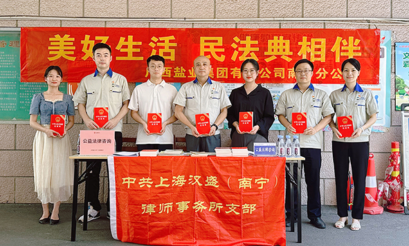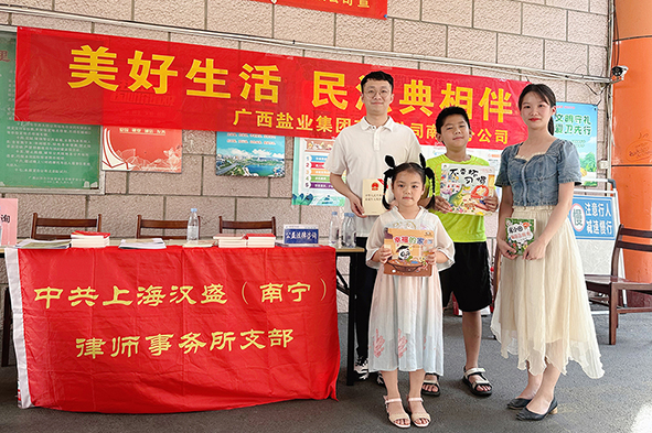 為提升民眾的法治與維權(quán)意識,積極學(xué)習(xí)貫徹二十大精神,推進法治惠民工作的開展,宣傳普及未成年人保護法律知識,2023年6月1日,中共上海漢盛(南寧)律師事務(wù)所支部委員會與中共廣西鹽業(yè)集團有限公司南寧分公司支部委員會聯(lián)合開展黨建共建活動暨“六·一”兒童節(jié)關(guān)愛行動。