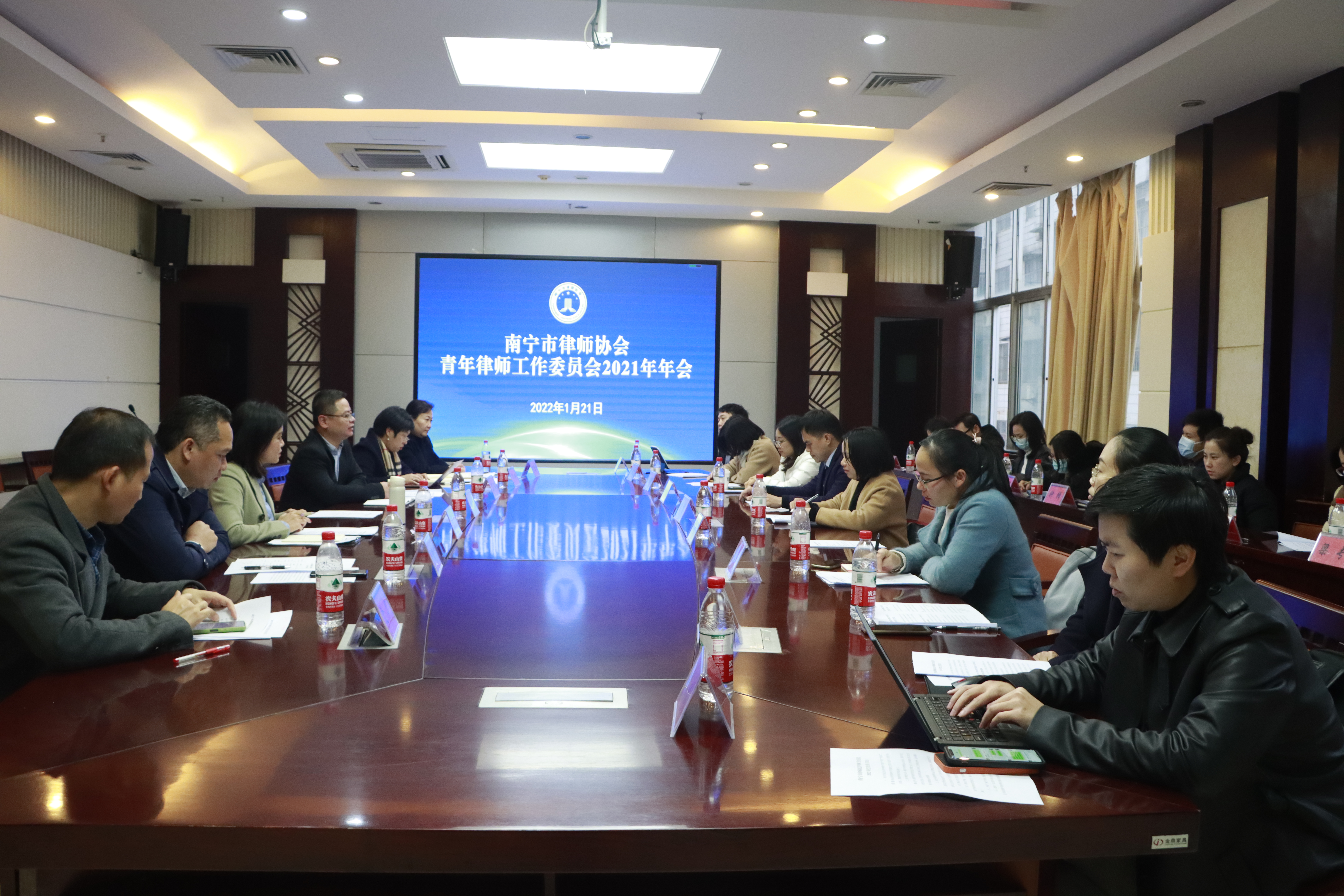 為總結(jié)2021年工作,并對2022年工作進(jìn)行規(guī)劃部署,2022年1月21日,南寧市律師協(xié)會(huì)在南寧市司法局召開青年律師工作委員會(huì)2021年會(huì)。南寧市律師協(xié)會(huì)副會(huì)長藍(lán)斌,青年律師工作委員會(huì)主任楊寧、副主任韋琳、滕黃鐵、黃學(xué)明、蒙華及委員共25人參加會(huì)議。會(huì)議由青年律師工作委員會(huì)主任楊寧主持。
