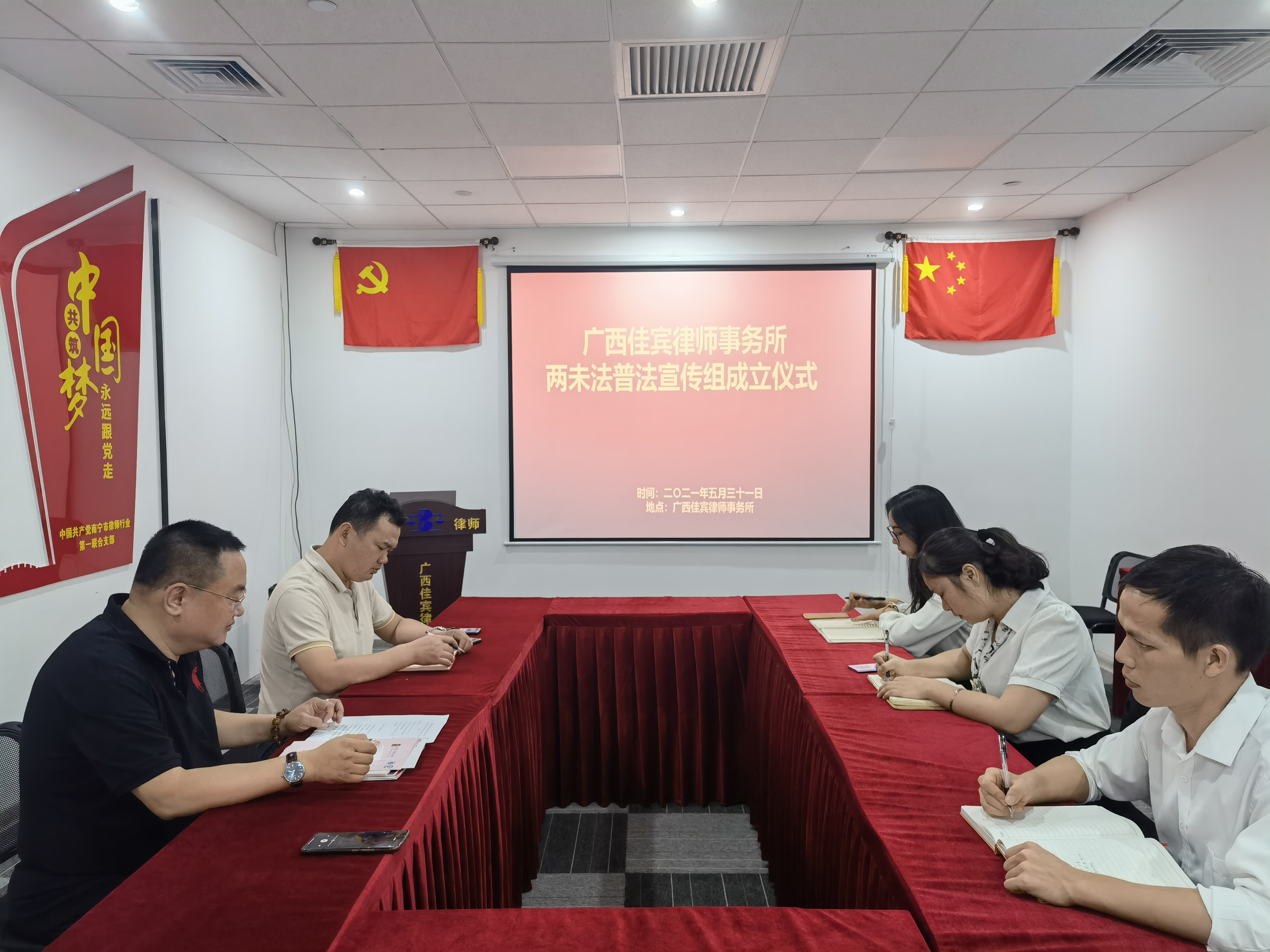 為做好“兩未法”宣傳貫徹施行工作,5月31日,廣西佳賓律師事務所成功組建“兩未法”普法宣傳組并舉行成立儀式。