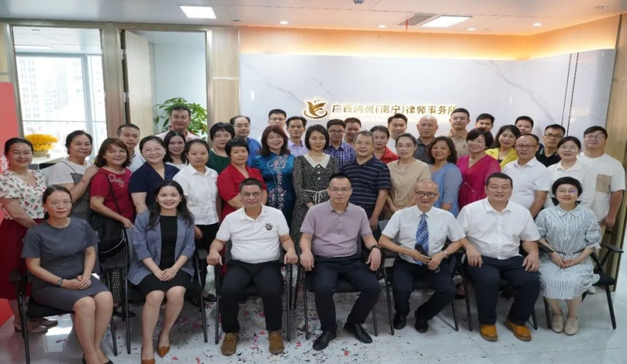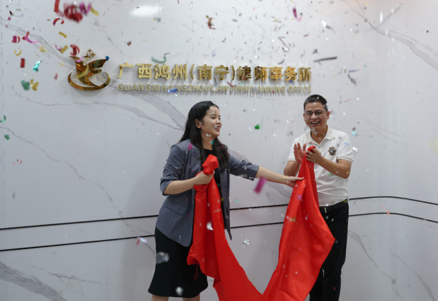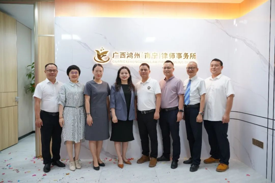 2023年7月7日上午9時18分,廣西鴻州(南寧)律師事務所(以下簡稱“南寧分所”)開業(yè)儀式在廣西南寧市青秀區(qū)九洲國際大廈南寧分所辦公室圓滿舉行。鴻州所高級合伙人彭洪律師、盧水全律師,黨支部書記盤達律師攜鴻州所管委會全體成員及律師、家屬代表、嘉賓共50多人參加了開業(yè)活動。鴻州所高級合伙人盧水全律師,南寧分所主任梁干律師為南寧分所開業(yè)揭牌。南寧市律師協(xié)會通過賀信對南寧分所開業(yè)表示熱烈的祝賀和美好的祝愿。