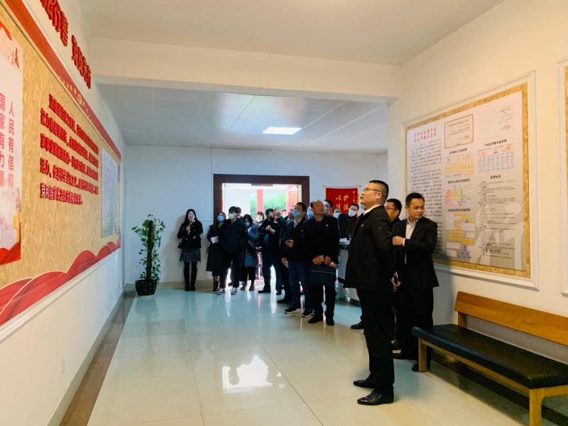 9日上午,在南寧市司法局律師工作科科長、中共南寧市律師行業(yè)委員會陸峰副書記帶領(lǐng)下,參加培訓班的全市30名律師事務(wù)所黨支部書記到謙行支部進行交流指導。交流組在謙行支部委員會宣傳委員周聰律師的講解下參觀了謙行支部黨建制度上墻、標識配備、黨員活動室等黨建場所建設(shè)情況,并在謙行模擬法庭召開座談交流會。