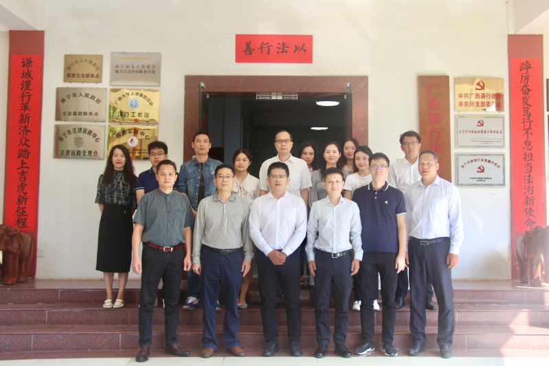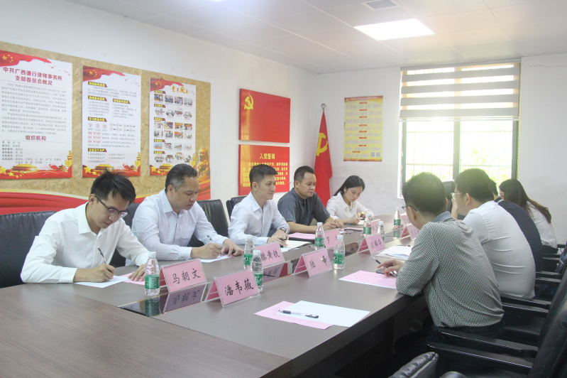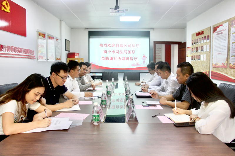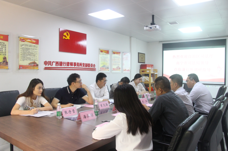 為進(jìn)一步了解律師事務(wù)所管理現(xiàn)狀,規(guī)范律師執(zhí)業(yè)行為,促進(jìn)律師隊伍建設(shè)和律師事業(yè)高質(zhì)量發(fā)展,2022年10月26日,自治區(qū)司法廳律師工作處副處長、廣西律師協(xié)會秘書長農(nóng)鋒華,廣西律師協(xié)會會員部主任曾文海,南寧市司法局律師工作科科長、南寧市律師行業(yè)黨委副書記陸峰等一行到廣西謙行律師事務(wù)所調(diào)研。廣西謙行律師事務(wù)所主任羅旭,副主任、合伙人賴志權(quán)、滕黃鐵等參加活動。