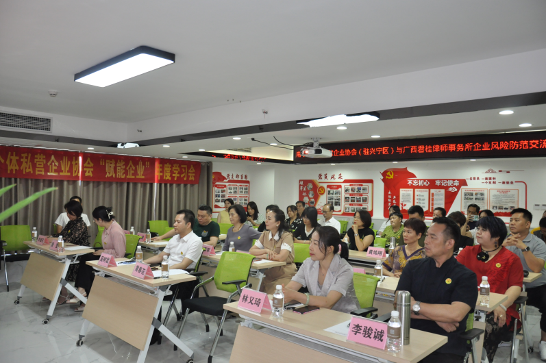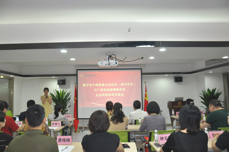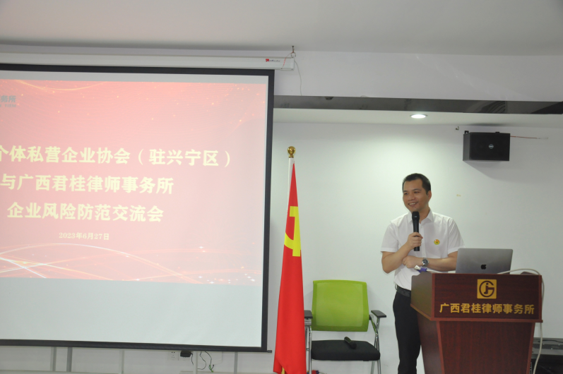 6月27日下午,我所與南寧市個(gè)體私營(yíng)企業(yè)協(xié)會(huì)(駐興寧區(qū))聯(lián)合組織開展《企業(yè)法律風(fēng)險(xiǎn)防范系列課程》專題講座活動(dòng),深入貫徹落實(shí)《法治中國(guó)建設(shè)規(guī)劃(2020-2025年)》,推進(jìn)全民普法,充分發(fā)揮律師專業(yè)人才在化解社會(huì)矛盾、促進(jìn)經(jīng)濟(jì)社會(huì)發(fā)展的職能作用,加強(qiáng)社會(huì)公共法律服務(wù),進(jìn)一步提升協(xié)會(huì)成員經(jīng)營(yíng)管理法律風(fēng)險(xiǎn)防范水平,為企業(yè)高質(zhì)量發(fā)展保駕護(hù)航。