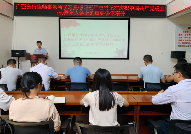 會(huì)議學(xué)習(xí)了習(xí)近平總書記在慶祝中國共產(chǎn)黨成立100周年大會(huì)上的重要講話精神,羅旭主任傳達(dá)大會(huì)上的重要講話精神,全體人員認(rèn)真學(xué)習(xí)領(lǐng)會(huì)。羅旭主任要求全所人員要把學(xué)習(xí)貫徹習(xí)近平總書記在慶祝中國共產(chǎn)黨成立100周年大會(huì)上的重要講話精神作為當(dāng)前和今后一個(gè)時(shí)期的一項(xiàng)重大政治任務(wù),把學(xué)習(xí)宣傳貫徹大會(huì)精神與律師行業(yè)突出問題專項(xiàng)治理、黨史學(xué)習(xí)教育、“我為群眾辦實(shí)事”緊密結(jié)合起來,積極開展“我為群眾辦實(shí)事”、“助力鄉(xiāng)村振興”活動(dòng),充分發(fā)揮律師專業(yè)職能作用,為人民群眾辦實(shí)事、解難題,切實(shí)增強(qiáng)人民群眾法治獲得感、幸福感、安全感,為推動(dòng)全面依法治國貢獻(xiàn)力量。