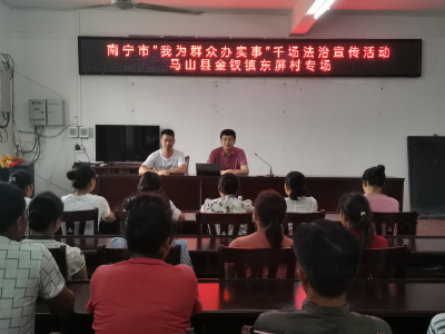 根據(jù)《馬山縣司法局開展“我為群眾辦實(shí)事——千場(chǎng)法治宣傳”活動(dòng)的工作方案》文件要求,2021年6月27日、2021年6月29日,北京市金開(南寧)律師事務(wù)所前往馬山縣里當(dāng)鄉(xiāng)、金釵鎮(zhèn),在鄉(xiāng)(鎮(zhèn))司法所和各村委的配合下,開場(chǎng)了五場(chǎng)“美好生活·民法典相伴”主題宣傳活動(dòng),為各村村民送上精彩絕倫的普法講座。