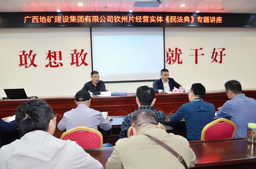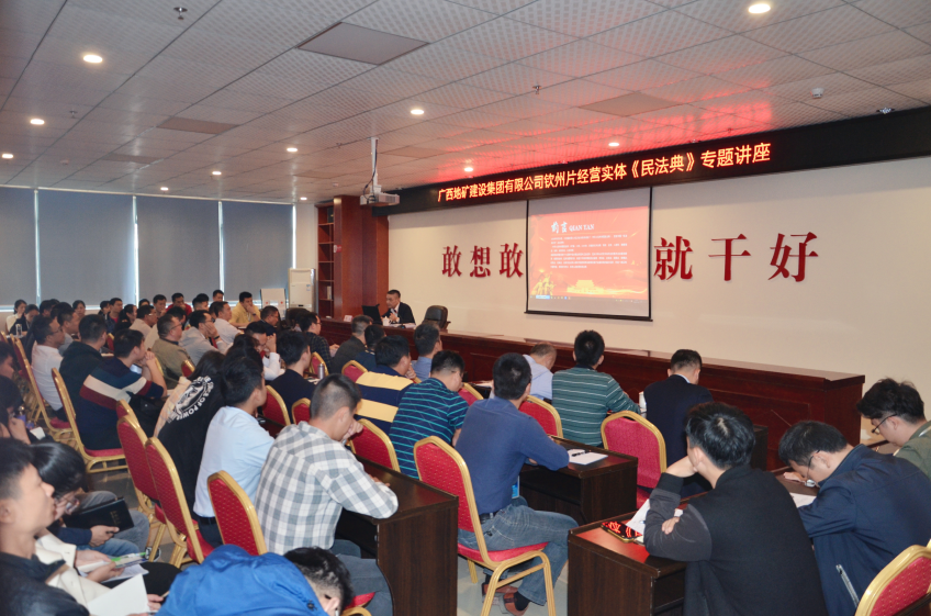 2020年5月28日第十三屆全國人民代表大會第三次會議通過的我國《民法典》將于2021年1月1日起施行。為進(jìn)一步貫徹落實習(xí)近平總書記關(guān)于頒布實施《民法典》的重要講話精神,宣傳普及即將生效的《民法典》,充分發(fā)揮律師的專業(yè)優(yōu)勢,踐行律師的社會責(zé)任,更好服務(wù)客戶,應(yīng)常年法律顧問單位廣西地礦建設(shè)集團(tuán)有限公司的邀請,廣西格局律師事務(wù)所創(chuàng)始人、主任周鑫律師分別于2020年11月3日和2020年11月5日分赴廣西地礦建設(shè)集團(tuán)有限公司位于欽州市的子公司廣西地礦正元房地產(chǎn)開發(fā)有限公司以及位于南寧市的集團(tuán)公司總部,進(jìn)行《民法典》專題講座。
