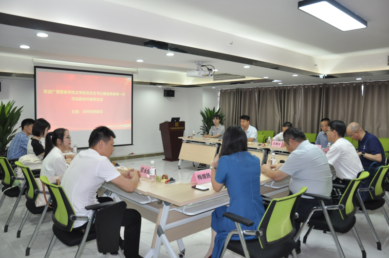 唐連榮書記首先介紹廣西警察學(xué)院法學(xué)院的專業(yè)學(xué)科和畢業(yè)生情況,并對“訪所拓崗”主題展開了深入熱情的交流。