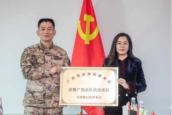 今年來,璟益律所分別與武警廣西總隊(duì)機(jī)動(dòng)支隊(duì)、武警廣西總隊(duì)河池支隊(duì)、武警廣西總隊(duì)防城港支隊(duì)建立法律顧問合作關(guān)系,緊貼部隊(duì)出現(xiàn)的熱點(diǎn)、難點(diǎn)、險(xiǎn)點(diǎn)問題,組織開展法律知識(shí)講座3場,加強(qiáng)部隊(duì)依法治軍舉措,增加部隊(duì)官兵法治意識(shí),共同推進(jìn)新時(shí)代強(qiáng)軍事業(yè)。