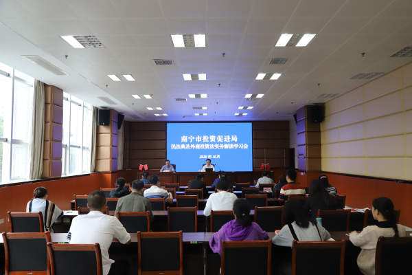 為全面加強(qiáng)《外商投資法》及配套法規(guī)的學(xué)習(xí),做好外資促進(jìn)、外資服務(wù)等實(shí)務(wù)工作,營(yíng)造更好的外商投資營(yíng)商環(huán)境。2020年10月30日,受南寧市投資促進(jìn)局邀請(qǐng),我所副主任、合伙人譚京凱律師到南寧市投資促進(jìn)局開(kāi)展《外商投資法》及《民法典》講座。