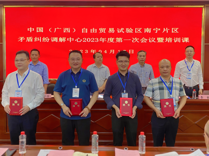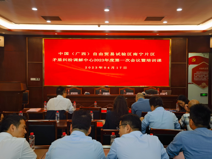 中國(廣西)自由貿(mào)易試驗(yàn)區(qū)南寧片區(qū)矛盾糾紛調(diào)解中心2023年度首次會議暨培訓(xùn)課于2023年4月17日下午在設(shè)立于北京市中聞(南寧)律師事務(wù)所的調(diào)解中心會議室召開。