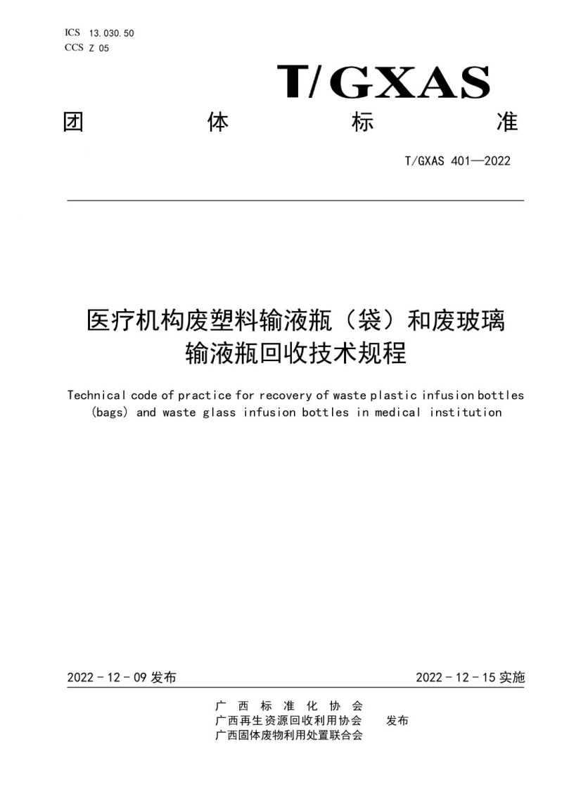 該《技術(shù)規(guī)程》為全國首個省級醫(yī)療機(jī)構(gòu)輸液瓶(袋)回收團(tuán)體標(biāo)準(zhǔn),有助于醫(yī)療機(jī)構(gòu)分類存放、回收單位規(guī)范收集、分揀、貯存和運輸可回收物,有效保障環(huán)境安全和群眾健康。