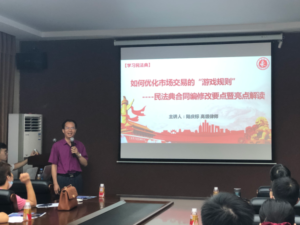 廣西科豪律師事務(wù)所高級(jí)律師陸慶標(biāo)主任受邀為本次專(zhuān)題培訓(xùn)進(jìn)行主講,本次培訓(xùn)中陸慶標(biāo)主任主講的專(zhuān)題為《如何優(yōu)化市場(chǎng)交易“游戲規(guī)則”----民法典合同編修改要點(diǎn)暨亮點(diǎn)解讀》,本次專(zhuān)題內(nèi)容一共分為九個(gè)部分進(jìn)行講解。