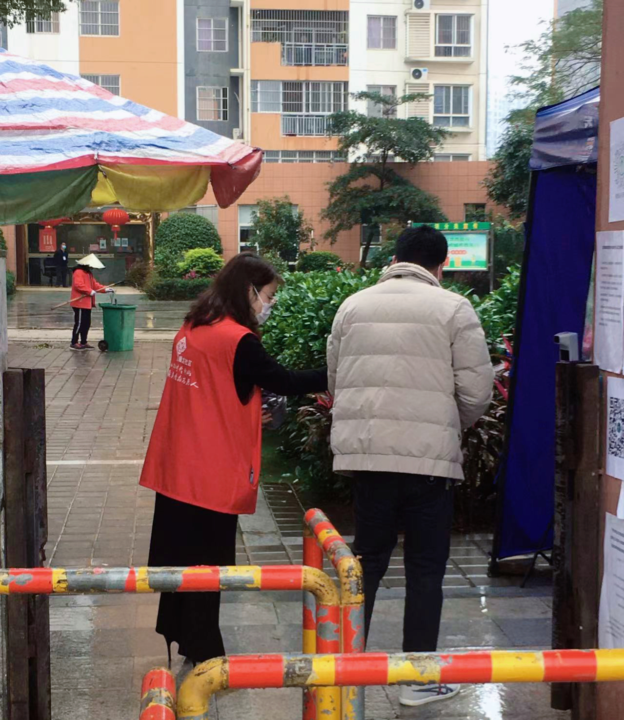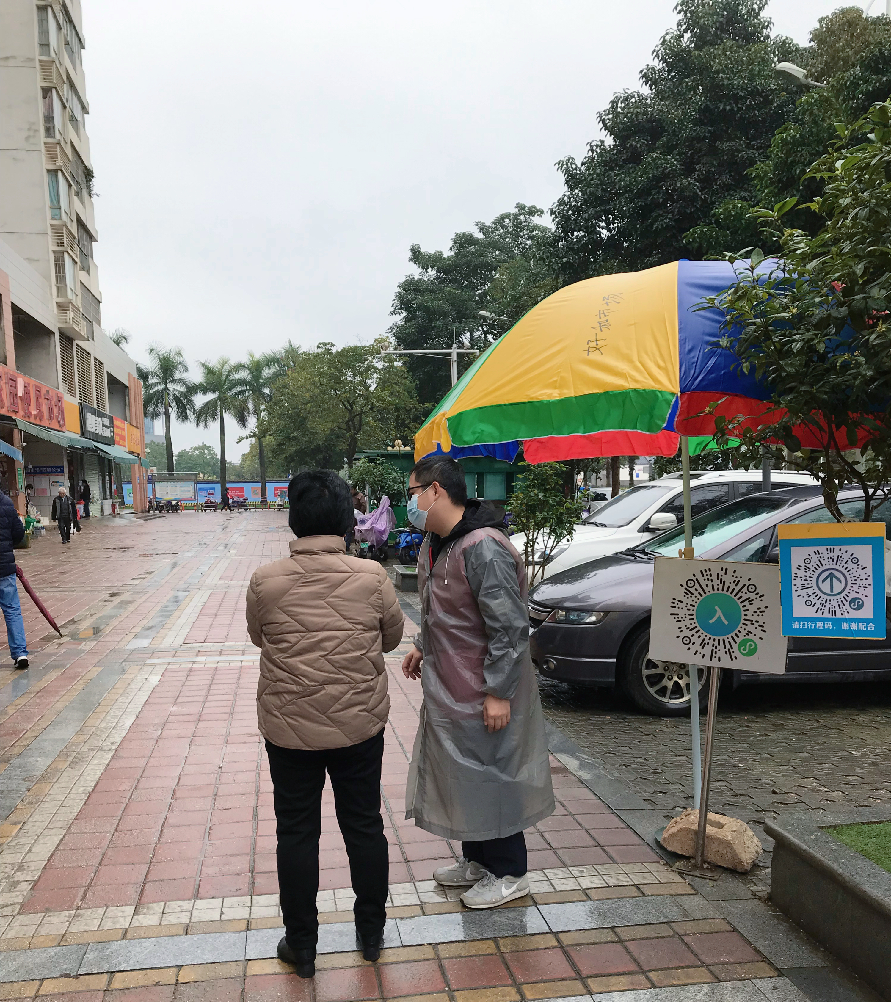 2月16日,律師們奔赴對(duì)接志愿者服務(wù)的蟠龍社區(qū),經(jīng)過簡單的崗位培訓(xùn),他們帶好口罩,穿好工作服,便開始值崗。為了盡量減少排隊(duì)居民的停留時(shí)間,他們?cè)诤L(fēng)中頂著小雨一刻不停,快速重復(fù)“請(qǐng)打開健康碼和行程卡”、檢查、核實(shí)等動(dòng)作。至換班時(shí),已臉色凍紅,頭發(fā)汗?jié)?,手指發(fā)麻,但他們均表示,志愿服務(wù)重在參與,共同抗疫有你有我!