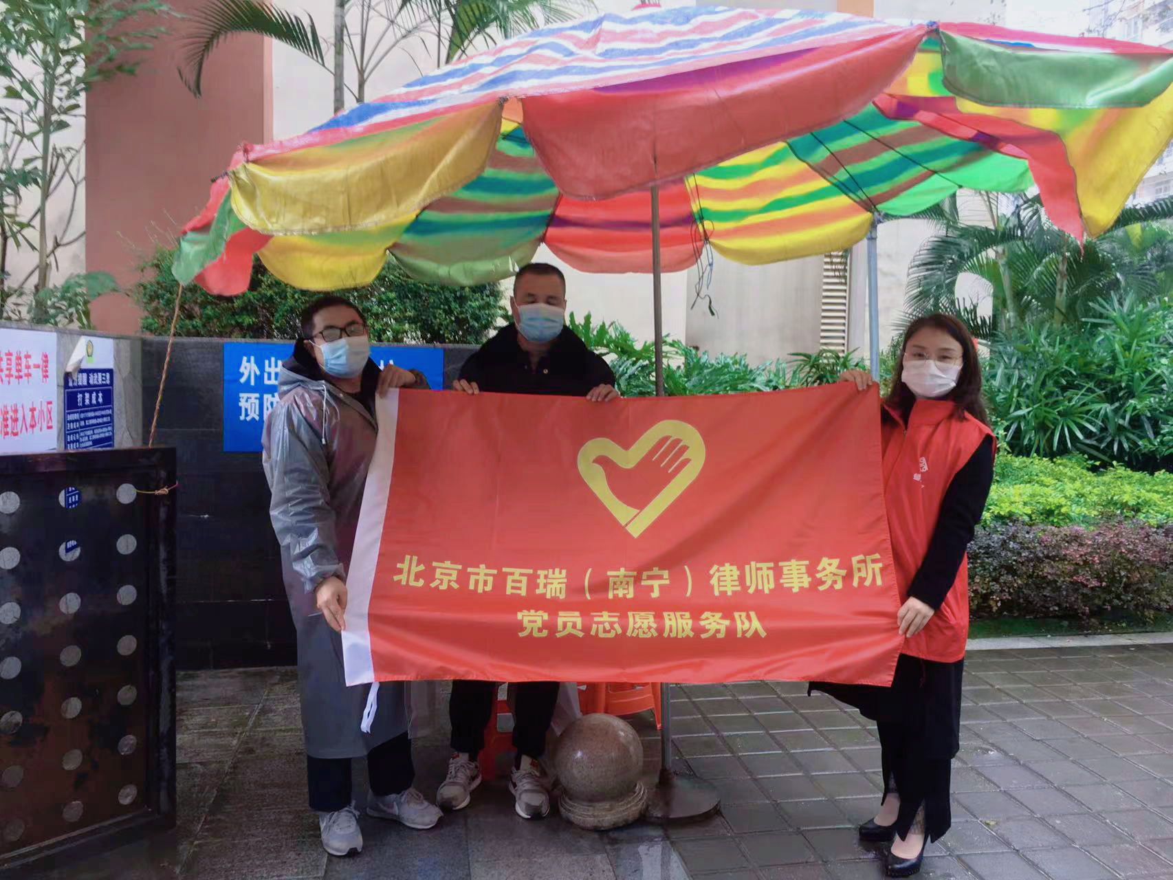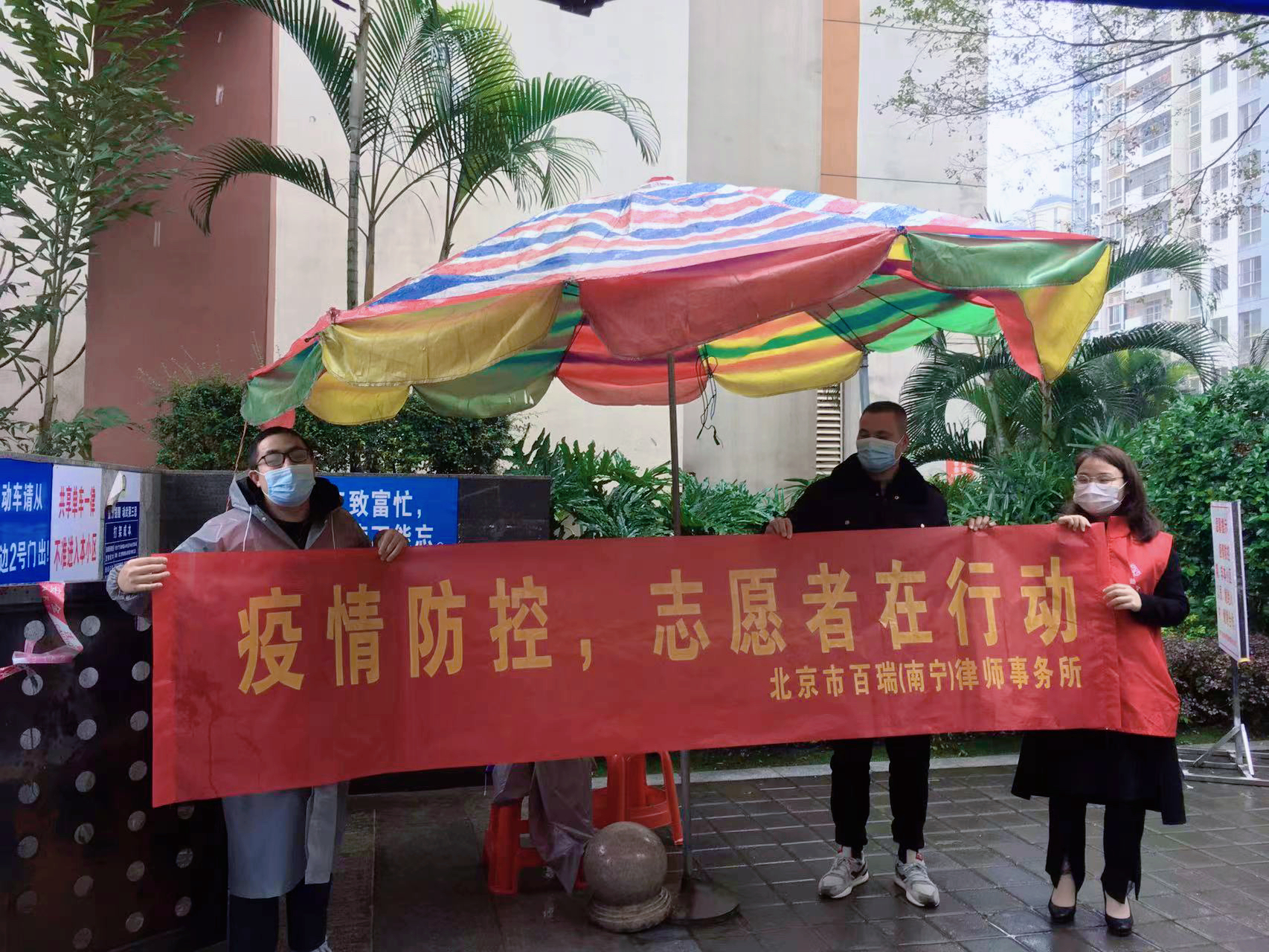 北京市百瑞(南寧)律師事務(wù)所“有呼必應(yīng)”,第一時(shí)間組織鐘東航、蘭嵐、張玉蓮等3名律師成立黨員志愿服務(wù)隊(duì),積極參與疫情防控志愿服務(wù)活動(dòng)。各位律師根據(jù)疫情防控指揮部通知,隨時(shí)待命,助力疫情防控工作。