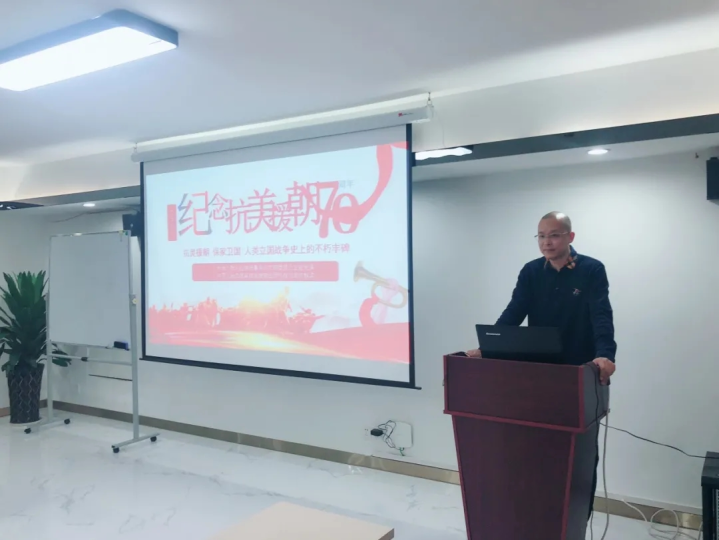 隨后,我所黨支部書記、管委會(huì)主任伍輝給我們上了一堂以“紀(jì)念抗美援朝出國(guó)作戰(zhàn)70周年”為主題的黨課。伍主任介紹了抗美援朝戰(zhàn)爭(zhēng)的歷史,70年前,中國(guó)人民志愿軍高舉保衛(wèi)和平、反抗侵略的正義旗幟,發(fā)揚(yáng)偉大的愛國(guó)主義精神和革命英雄主義精神,同朝鮮人民和軍隊(duì)一道,歷經(jīng)兩年零9個(gè)月艱苦卓絕的浴血奮戰(zhàn),贏得了抗美援朝戰(zhàn)爭(zhēng)的偉大勝利。接著,大家也發(fā)表了自己對(duì)這段歷史的認(rèn)識(shí),共同討論和分享了“為什么要紀(jì)念抗美援朝戰(zhàn)爭(zhēng)”、“紀(jì)念的意義是什么”及“抗美援朝戰(zhàn)爭(zhēng)留下了什么”三個(gè)方面的內(nèi)容。本次黨課重點(diǎn)突出,參會(huì)人員討論熱烈,學(xué)習(xí)氛圍濃厚,教育意義深刻
