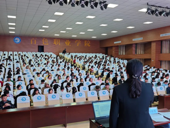 百色職業(yè)學院內氣氛熱烈,師生們齊聚一堂,在宣講會過程中,多位學生積極舉手回答問題,充滿互動性的問答模式,讓學生們對憲法有了更深入的了解,也增強了他們的法律意識和法治觀念。