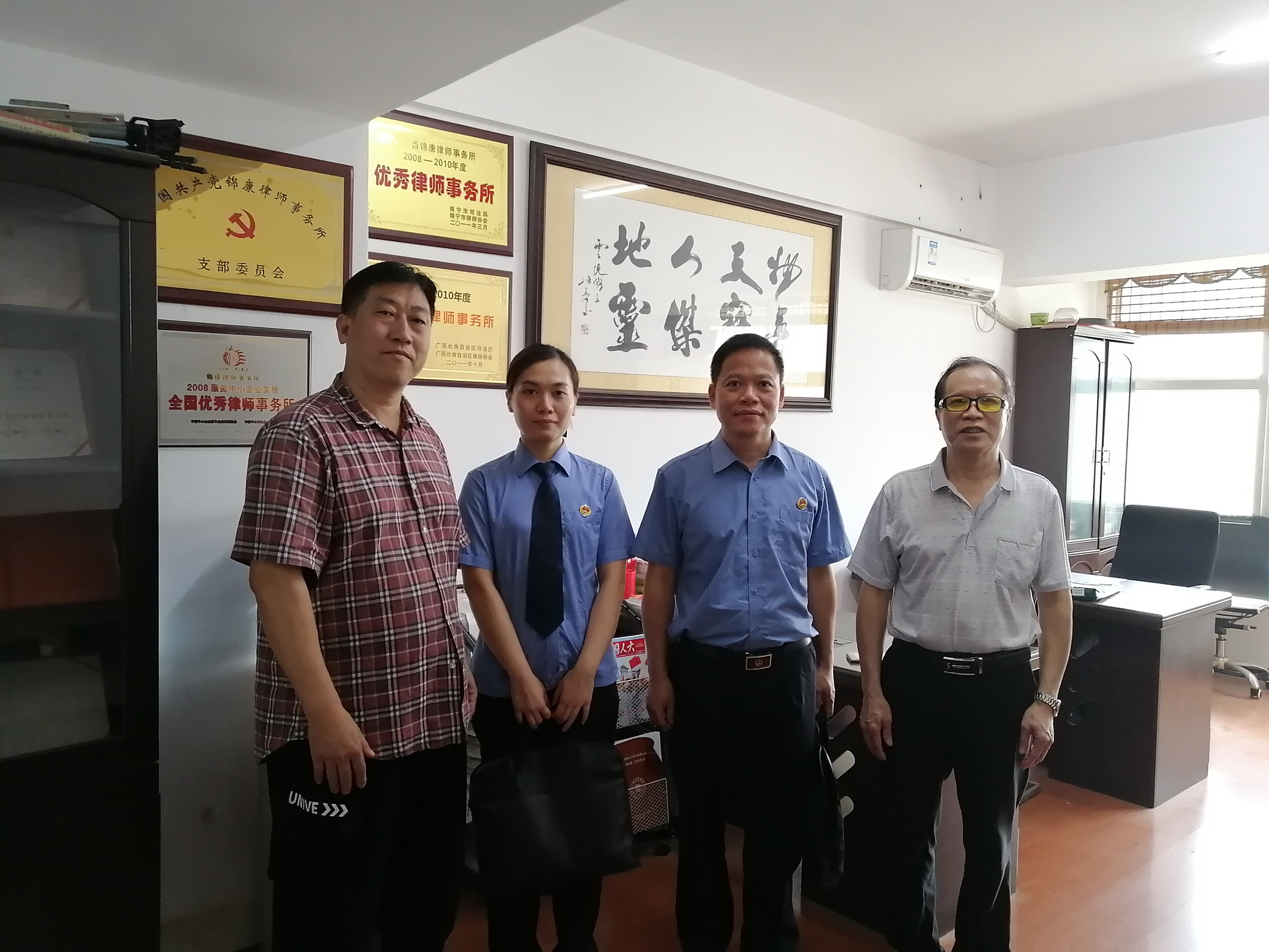 2020年8月10日上午,南寧市邕寧區(qū)人民檢察院第二檢察部周爵宇主任一行二人,受上級部門領導委托來到廣西錦康律師事務所與律師們進行座談調(diào)研活動。