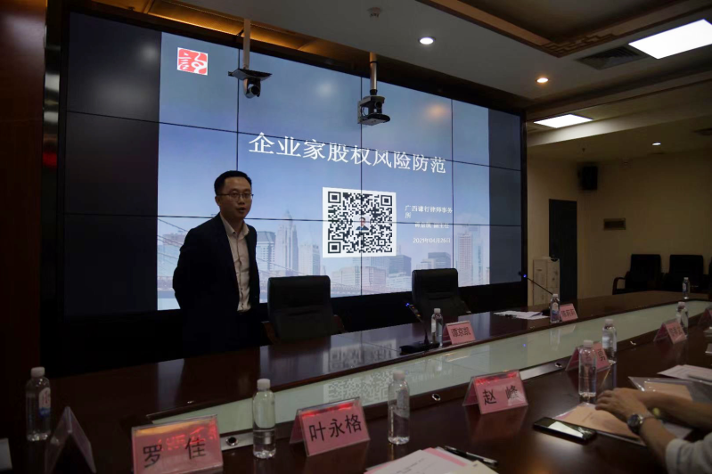 4月26日,為更好地服務(wù)地方商會(huì)企業(yè),受南寧市興寧區(qū)工商業(yè)聯(lián)合會(huì)邀請(qǐng),廣西謙行律師事務(wù)所副主任、合伙人譚京凱律師為南寧市興寧區(qū)工商聯(lián)執(zhí)委等企業(yè)家開展《企業(yè)家股權(quán)風(fēng)險(xiǎn)防范》的專題講座。