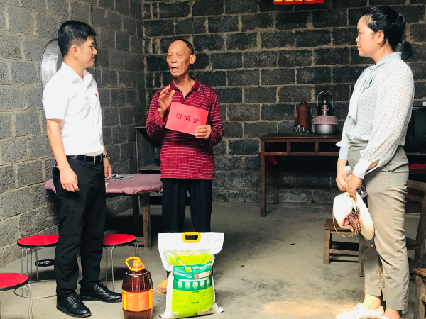 參加活動(dòng)人員先后在龍開村村委及黃番村村委與駐村第一書記毛鑫、村黨支書韋萍等村委干部進(jìn)行座談交流,詳細(xì)了解兩個(gè)村扶貧工作開展情況,通過何種方式對貧困戶進(jìn)行幫扶,幫扶工作中目前遇到哪些困難等,對扶貧下一步工作進(jìn)行交流和探討并就村委提出的問題及困難給予意見及建議。座談后,謙行支部還給兩個(gè)村村委分別捐贈(zèng)了扶貧資金,資助其購買機(jī)器設(shè)備等,為鄉(xiāng)村振興助力,并對9戶貧困戶進(jìn)行了現(xiàn)場慰問送上了慰問金。座談會(huì)結(jié)束后,在第一書記及村黨支書的帶領(lǐng)下謙行支部及參加活動(dòng)領(lǐng)導(dǎo)一起走村入戶,走進(jìn)貧困戶家中,與他們進(jìn)行親切的交談,詢問他們的工作和家庭生活情況并送上大米、食用油及慰問金。