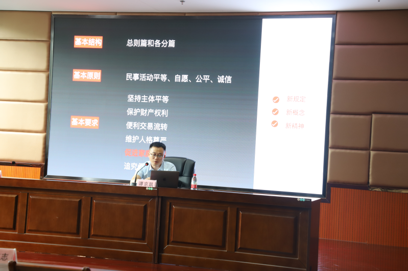 為貫徹落實習近平總書記關于頒布實施《民法典》的重要講話精神,深入開展黨史學習教育,扎實推進“我為群眾辦實事”實踐活動,充分發(fā)揮律師專業(yè)優(yōu)勢,進一步加大全民普法力度。2021年8月13日,南寧市投資促進局邀請廣西謙行律師事務所組織律師開展以“美好生活·民法典相伴”為主題的民法典講座,我所副主任、合伙人譚京凱律師受邀到場開展《民法典》實務解讀專題講座。