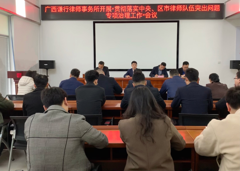 3月10日上午,廣西謙行律師事務(wù)所開展“貫徹落實(shí)中央、區(qū)市律師隊(duì)伍突出問題專項(xiàng)治理工作”會(huì)議,組織全所律師認(rèn)真學(xué)習(xí)貫徹落實(shí)“全區(qū)律師行業(yè)突出問題專項(xiàng)治理動(dòng)員部署”會(huì)議精神。