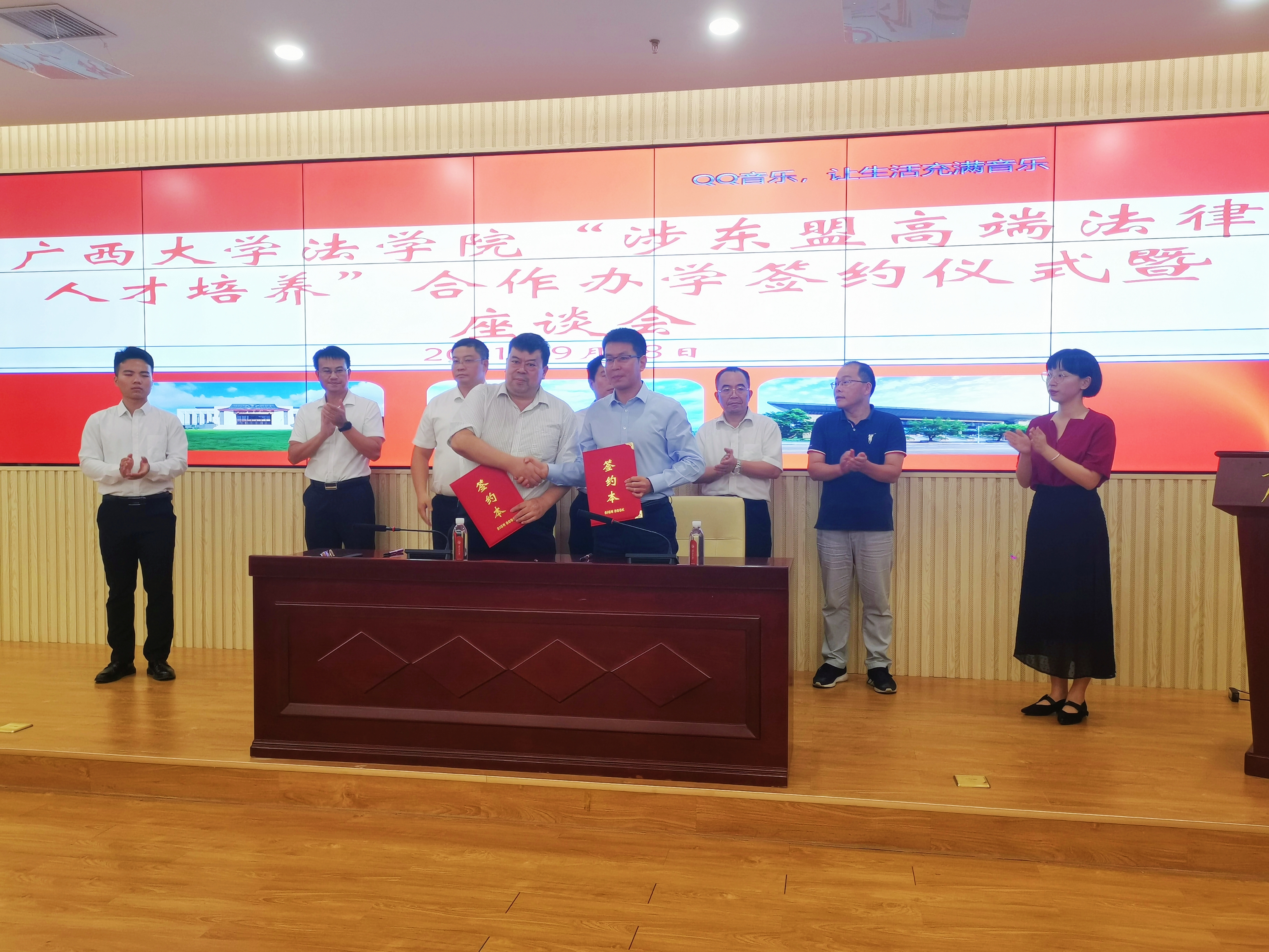 本次合作旨在聯(lián)合高校與實(shí)務(wù)單位合作培養(yǎng)應(yīng)用型、復(fù)合型法律人才,實(shí)現(xiàn)雙方資源共享,優(yōu)勢互補(bǔ),推動(dòng)法學(xué)理論研究與司法實(shí)務(wù)協(xié)同發(fā)展。漢盛南寧將發(fā)揮在涉外法律服務(wù)方面上的專業(yè)優(yōu)勢,與其他合作單位齊力為學(xué)校、社會(huì)培養(yǎng)涉東盟高端法律人才。
