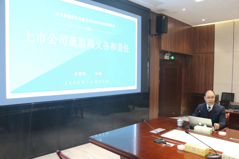近日,為進(jìn)一步提升董事、監(jiān)事和高級(jí)管理人的履職能力,提高公司法人治理水平,防范法律風(fēng)險(xiǎn),廣西璟開律師事務(wù)所創(chuàng)始合伙人、主任廖國靖律師應(yīng)邀為桂林旅游股份有限公司(以下簡(jiǎn)稱“桂林旅股”)開展了《上市公司董監(jiān)高義務(wù)和責(zé)任》專題培訓(xùn)。